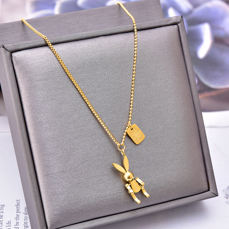 Cartoon cute machine rabbit clavicle chain mix chain fashion zodiac rabbit three-dimensional square necklace pendant titanium steel