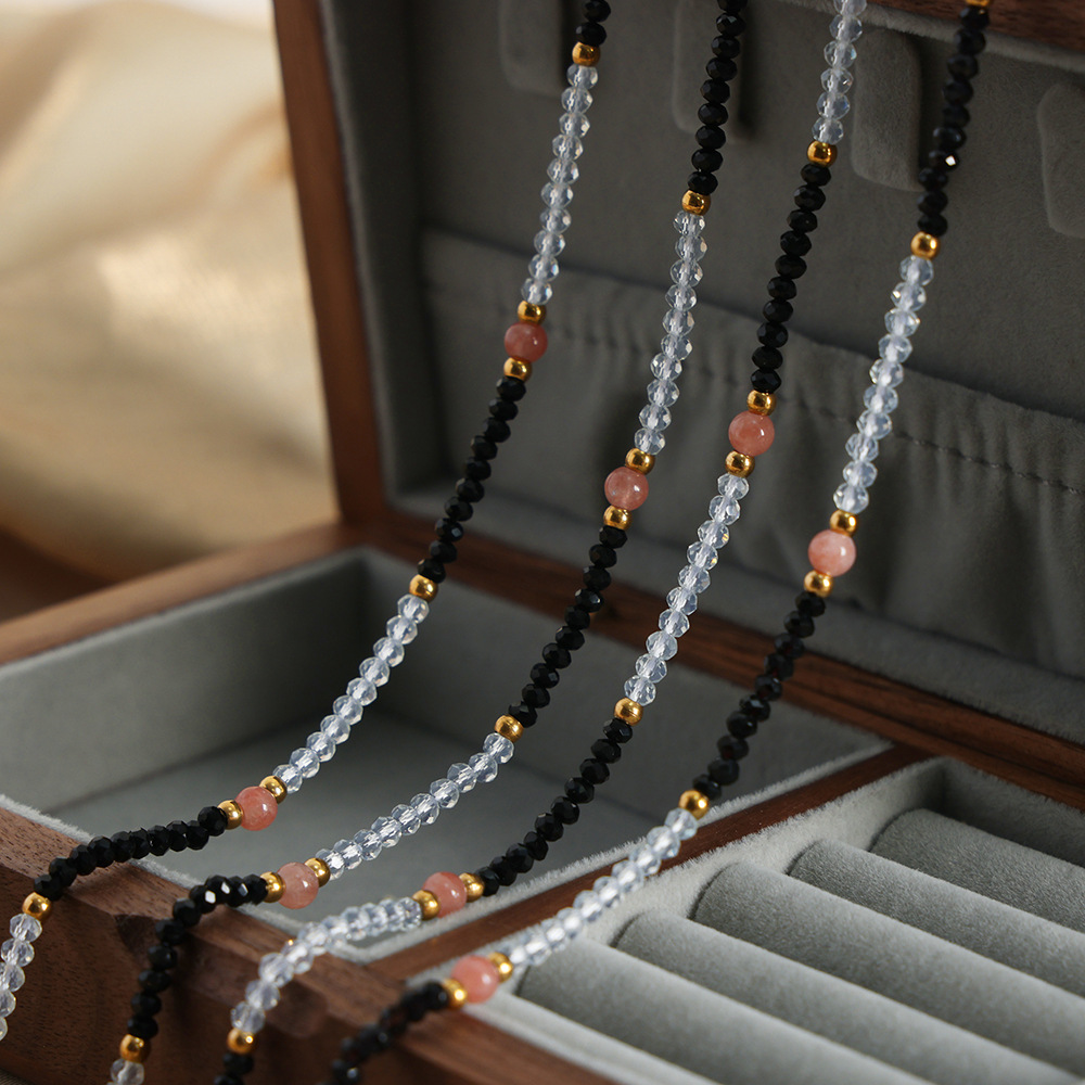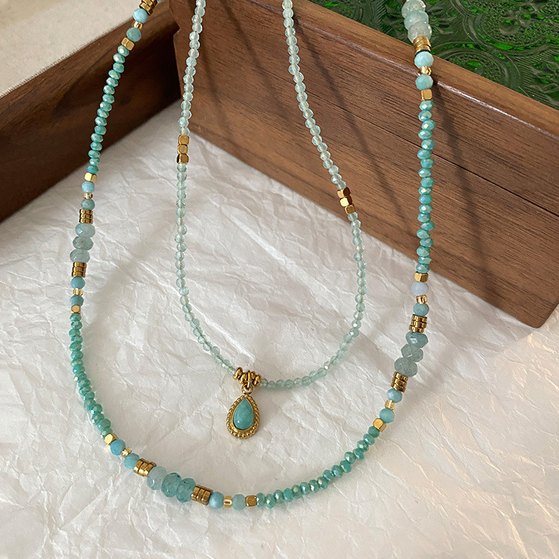Hong Kong-style fashion niche high-end temperament jewelry mix and match natural stone handmade beaded design titanium steel gold-plated necklace