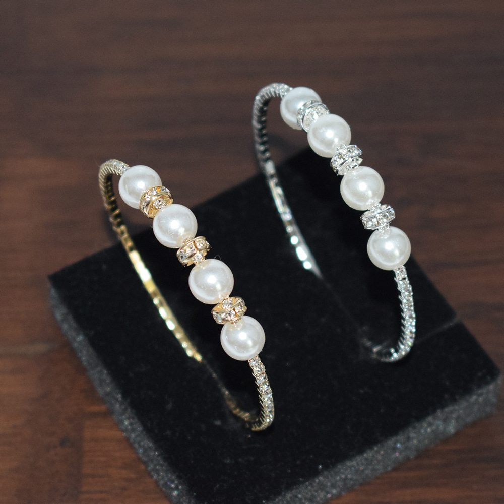 Korean style personalized all-match Fashion Women's bracelet mixed alloy open crystal pearl bracelet women's bracelet wholesale