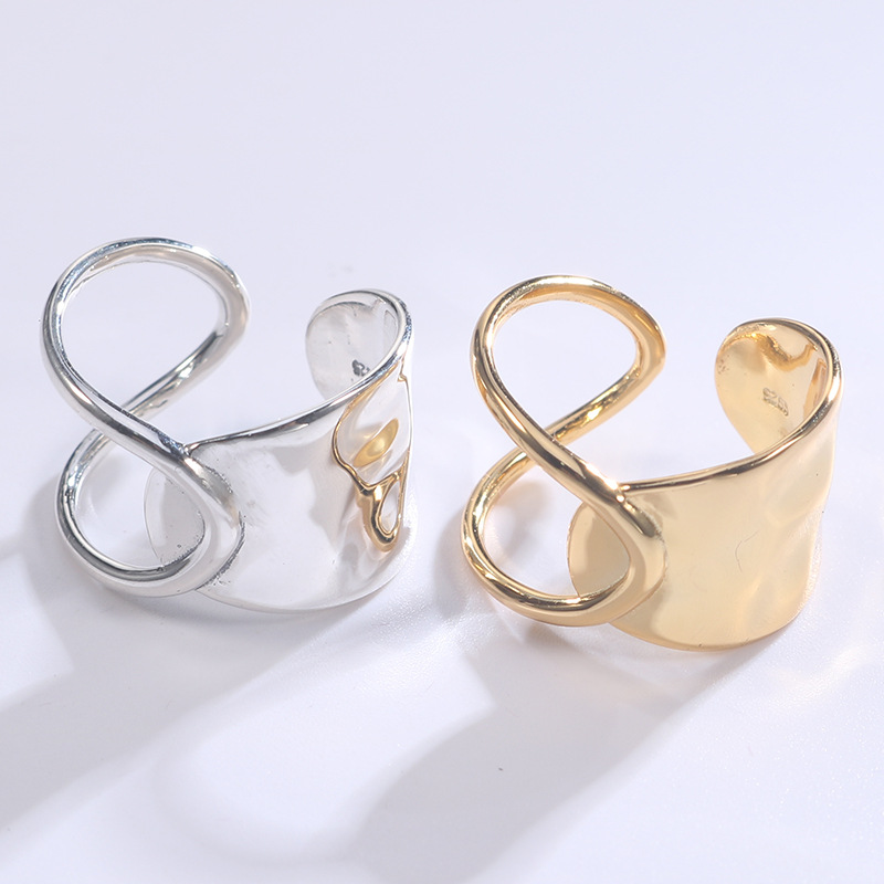 Cross-Border Recommended Geometric Hollow Rings for Women, Mix and Match European and American Street Fashion Cool Open Index Finger Rings, Trendy European and American Hand Accessories