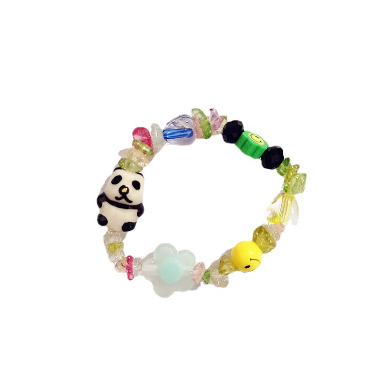 Creative mixed color contrast color cute painted panda flower mixed beaded girlfriends elastic bracelet for women