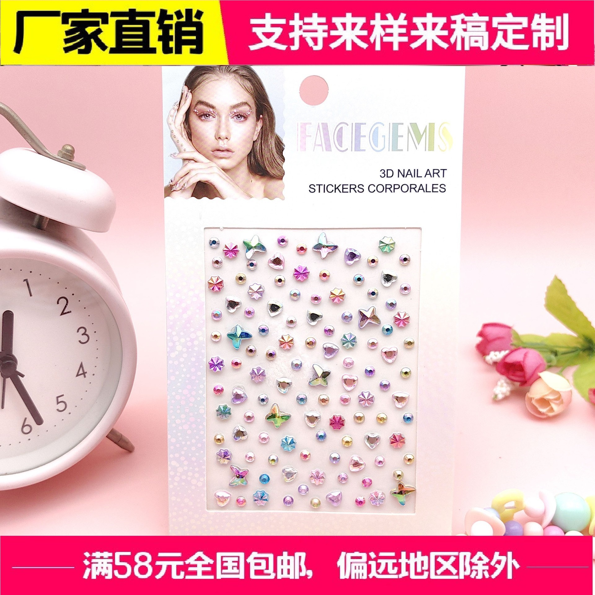 European and American Foreign Trade popular face eye gem diamond stickers love moon butterfly round diamond self-adhesive mixed Diamond