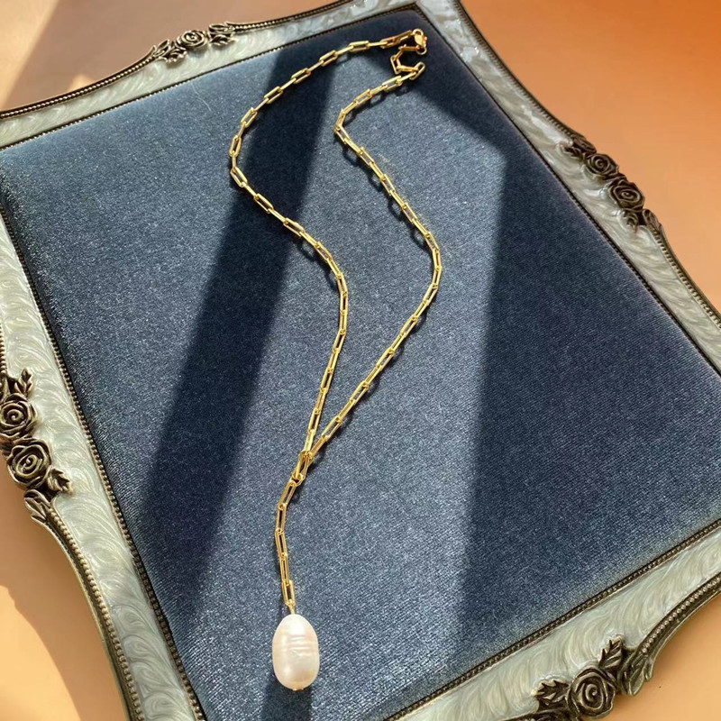 Meiouya original simple fashion New Baroque freshwater pearl brass chain necklace sweater chain mix and match