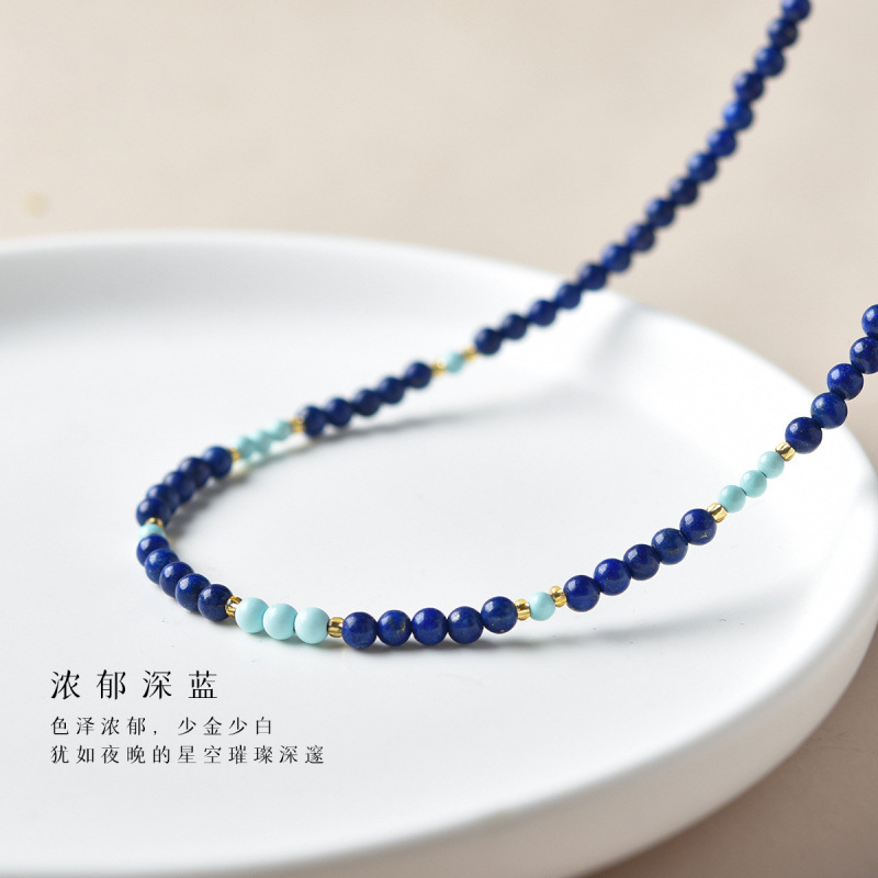 dark blue Natural Lapis Lapis Lapis Small Fresh Necklace Light Luxury Niche Pendant Summer Collarbone Niche Design Women's Necklace