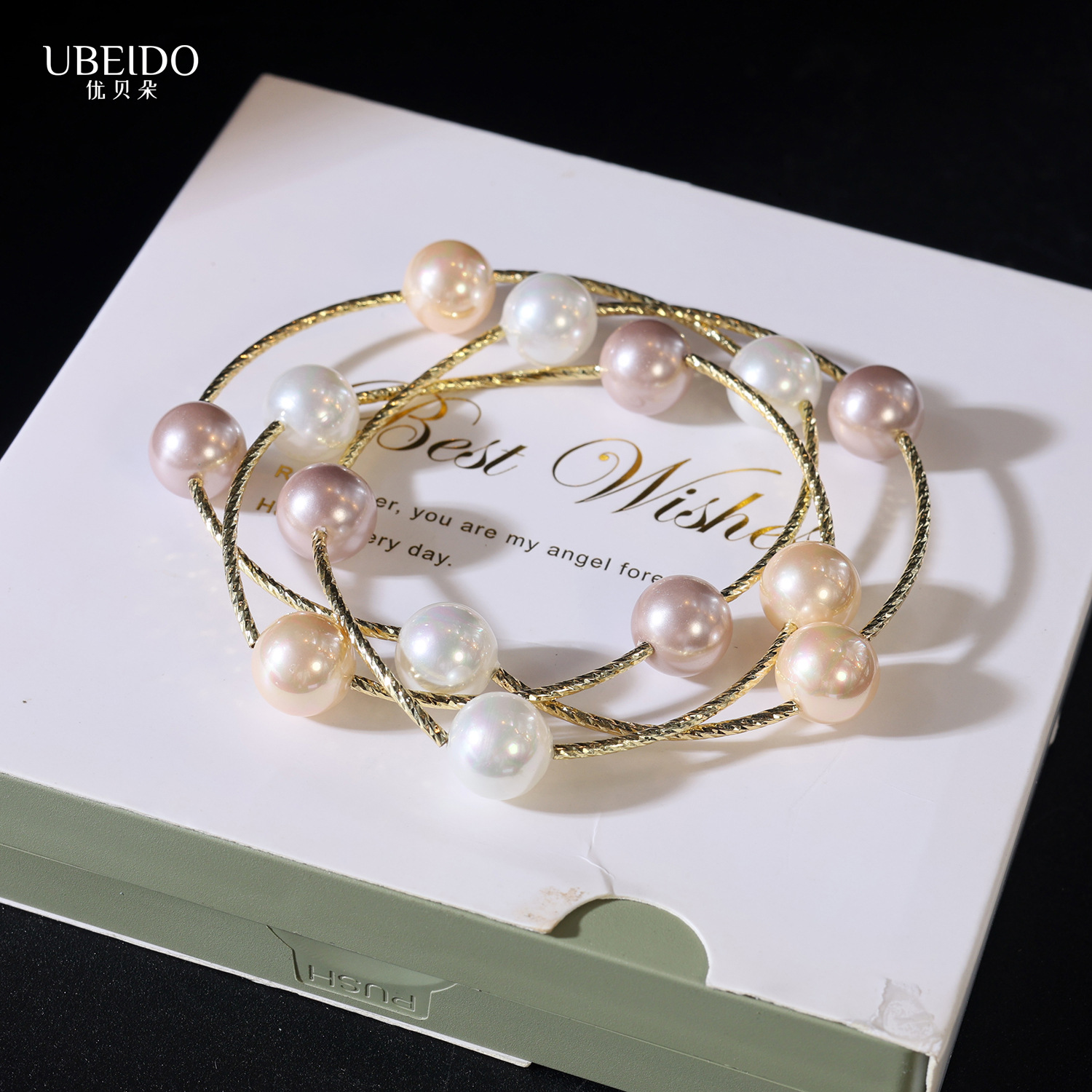 2025 New High-Quality Strong Light Shell Bead Bracelet Three-Circle Pearl Bracelet Elegant Versatile Hand Jewelry Manufacturer Wholesale