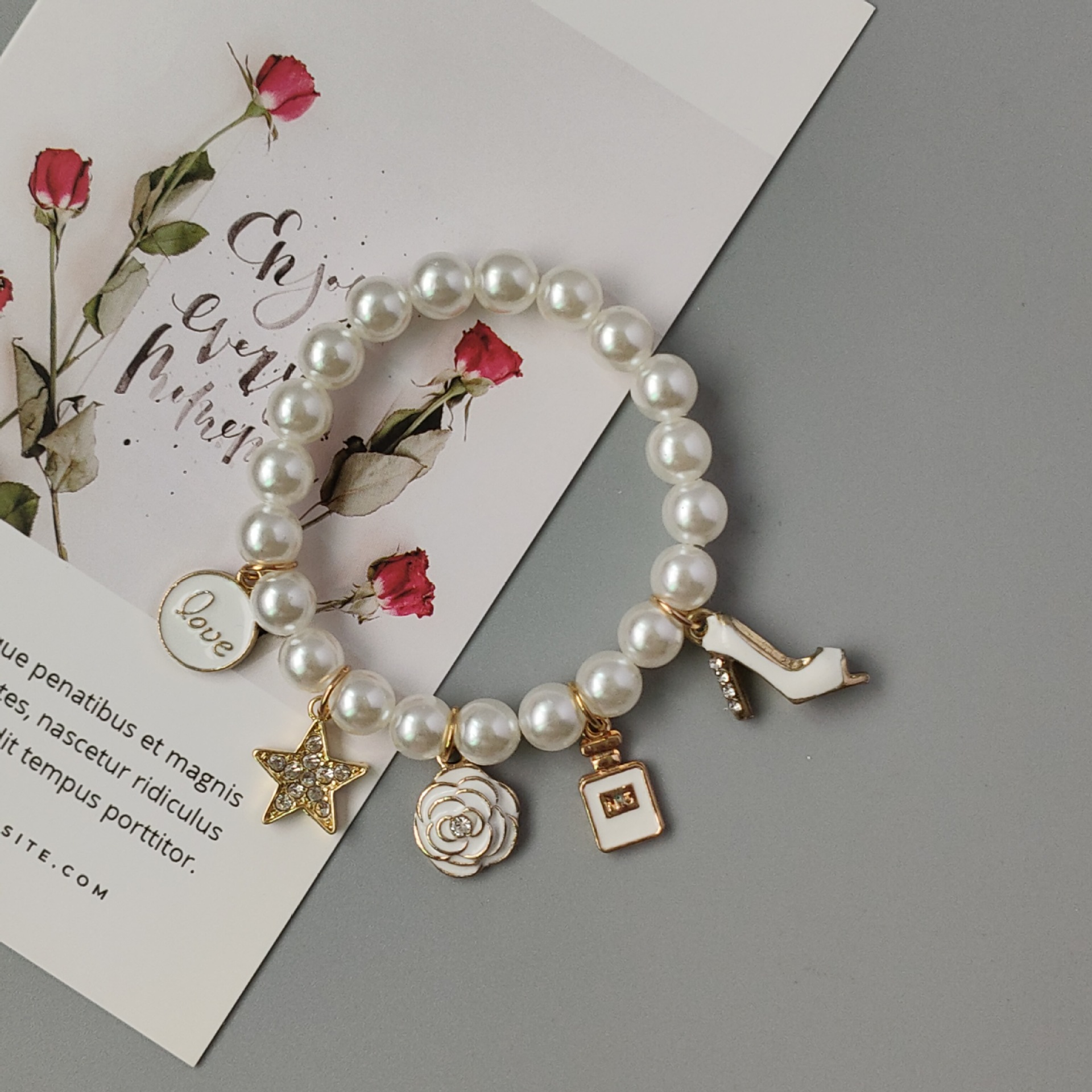 Korean Style Girls' Fresh and Fashionable Accessories, Jewelry, Cute Oil Dripping with Diamond Pendant, Colorful Imitation Pearl Mix and Match Bracelet