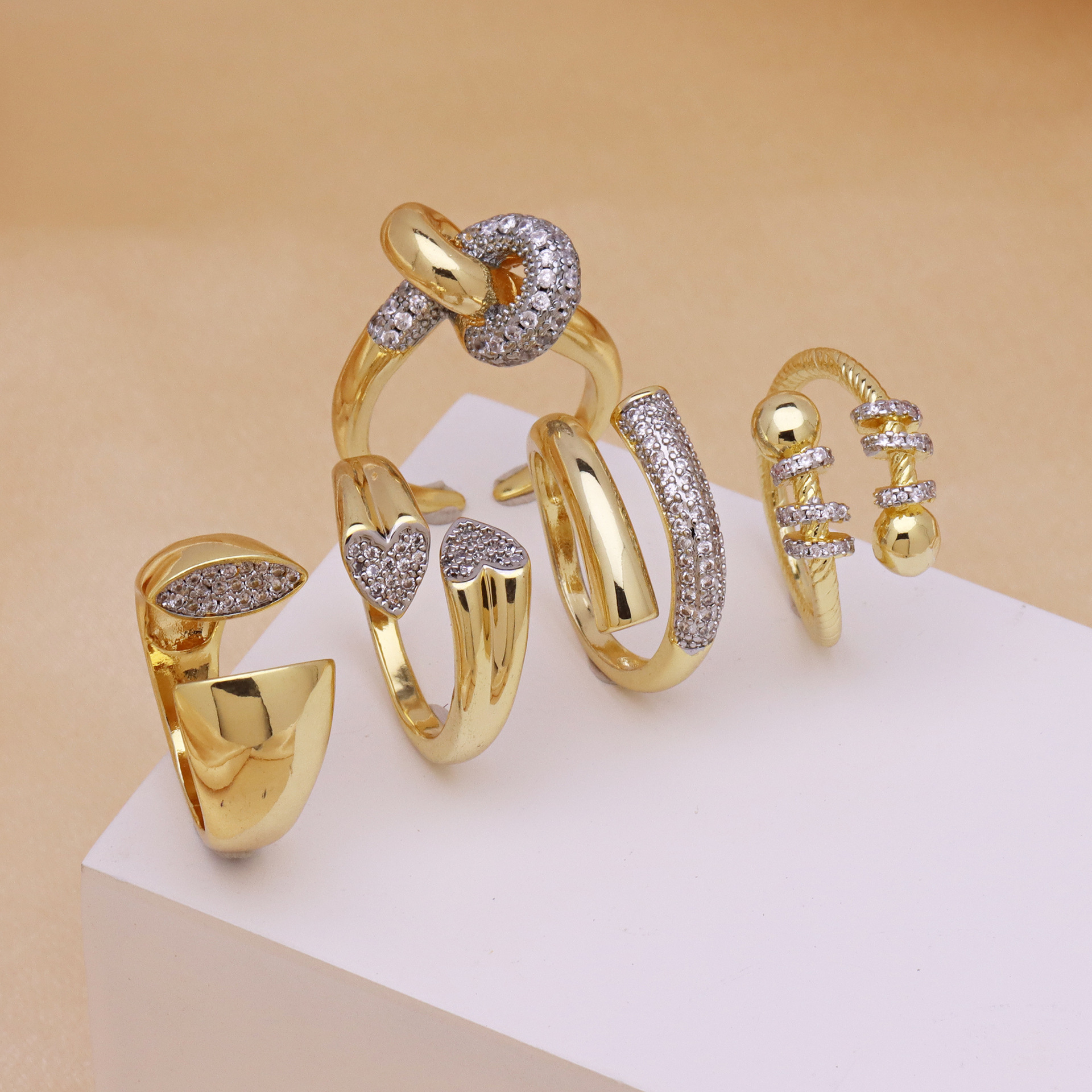 Cross-border European and American Fashion Sense Oval Love Heart Copper Gold Plated Zirconium Two-color Mix and Match Open Ring Ring for Women