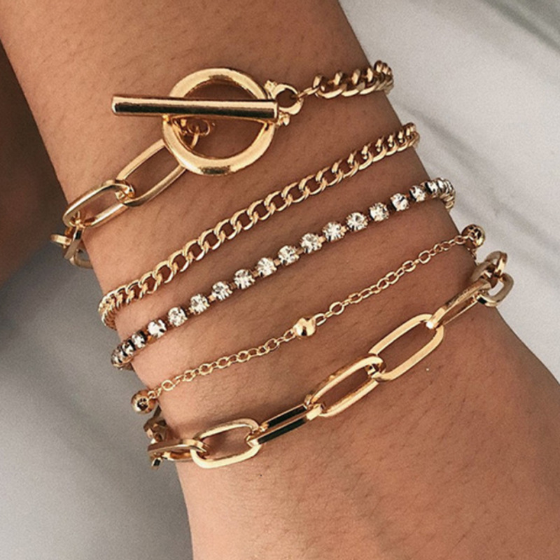 Simple Geometric otbuckle All-match Bracelet Women's Creative Mix and Match Diamond Beaded Multi-layer Bracelet