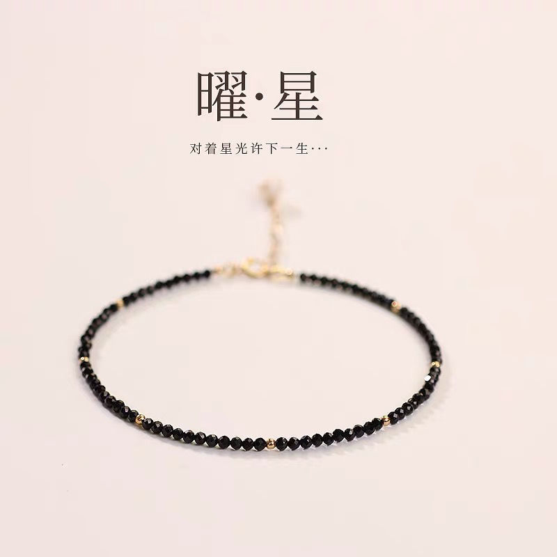 Black Spinel Bracelet for Women, Accessible Luxury Niche Ins Style Crystal Bracelet, High-End Design, Simple and Extremely Fine Hand Jewelry New Style