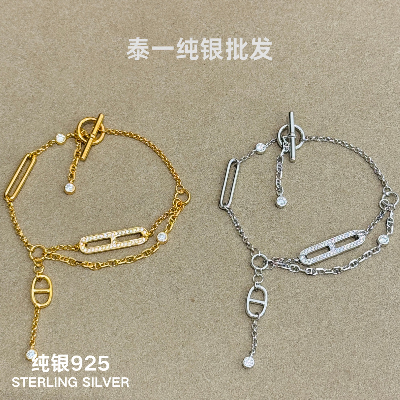 Sterling Silver S925 Pig Nose Chain Tassel Double-layer Personalized Bracelet Trendy Mix and Match High-grade Classic Glow Pendant