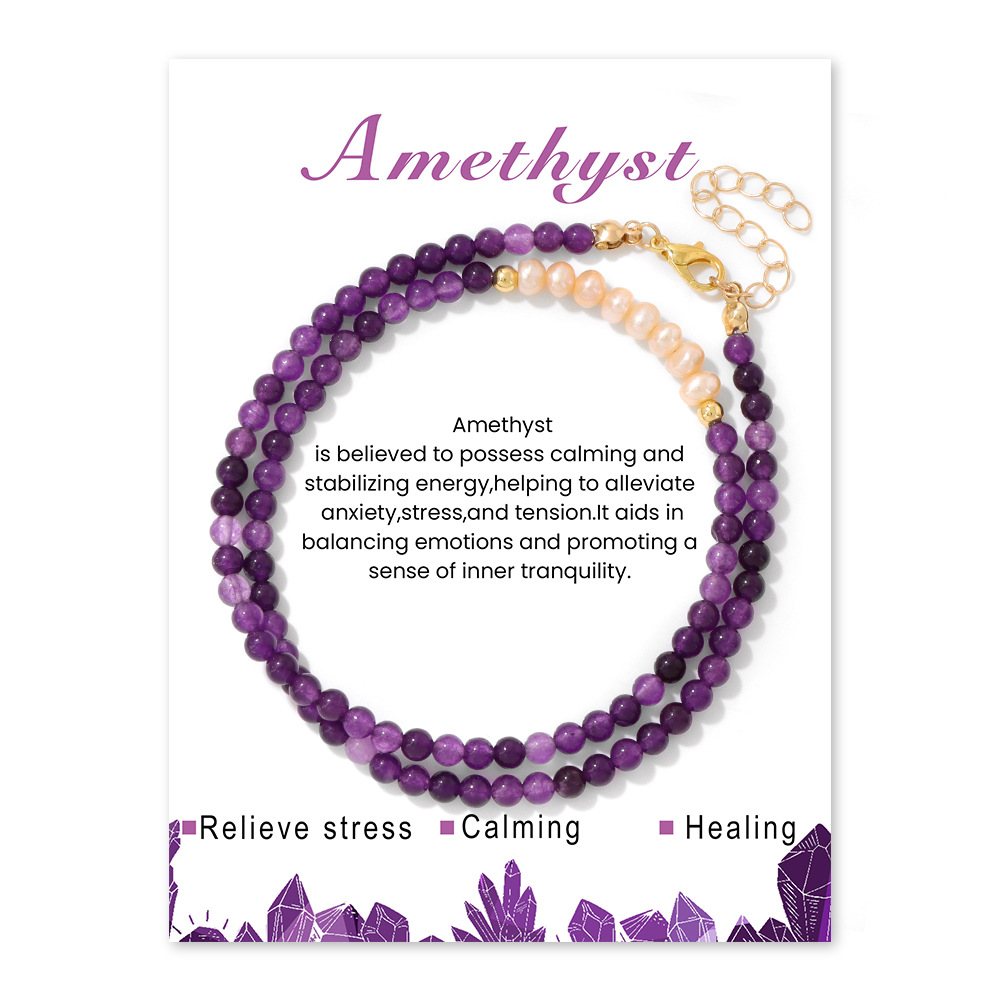 Cross-border New 4MM Natural Stone Round Bead Freshwater Powder Pearl Necklace Mix and Match Amethyst Chain Elegant Necklace Women
