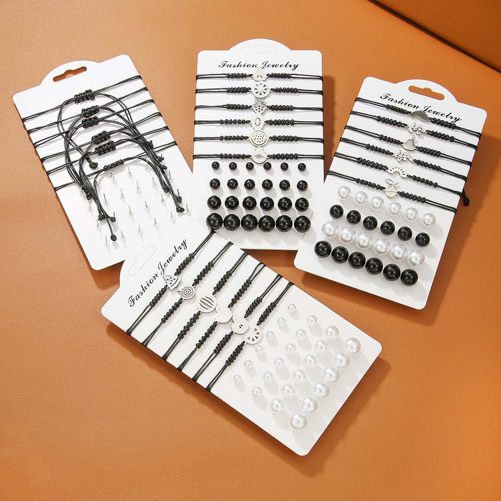 Cross-Border Original Earrings and Bracelet Combination Set, Simple Imitation Pearl Mixed Earrings, Stainless Steel Pendant, Woven Bracelets