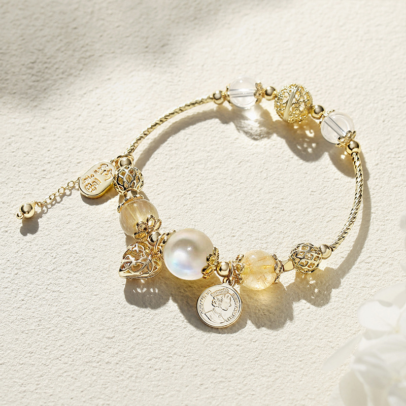 Weiyi Moonlight Stone Yellow Crystal White Crystal Gentle Clear Romantic Heart Mix and Match Women's High Sense Bracelet Hand