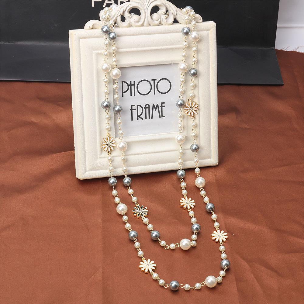Necklace for Women, Long Korean Style, Fashionable and Versatile Pearl Hanging Chain Jewelry, European and American Exaggerated Big-name Daisy Flower Pendant Accessories