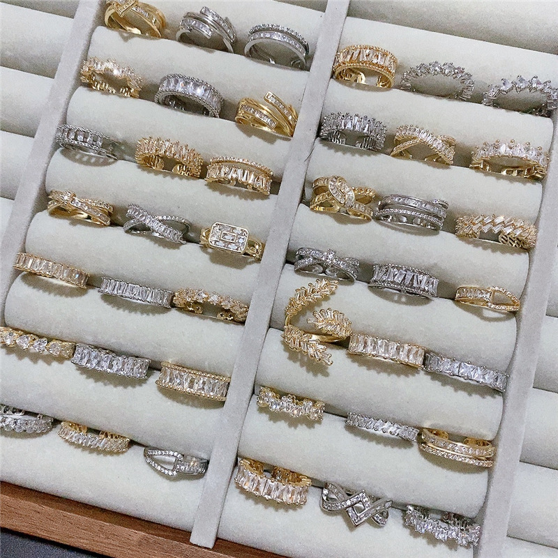 Korean-style Internet Celebrity Trapezoidal Irregular Arrangement Zircon Ring Niche Simple High-end Light Luxury Exquisite Micro-inlaid Ring