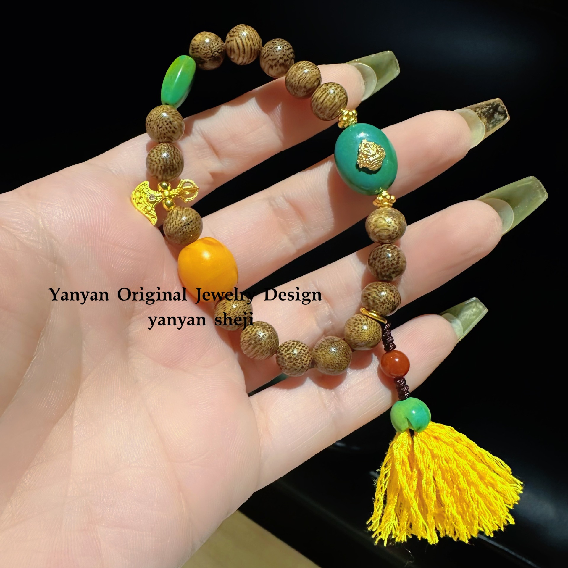 Green Sandalwood Abacus Beads with Rudraksha Bracelets, Wooden Flowers, Chinese Style Bracelets, Men's and Women's Jewelry, Buddhist Beads, Rosary Beads