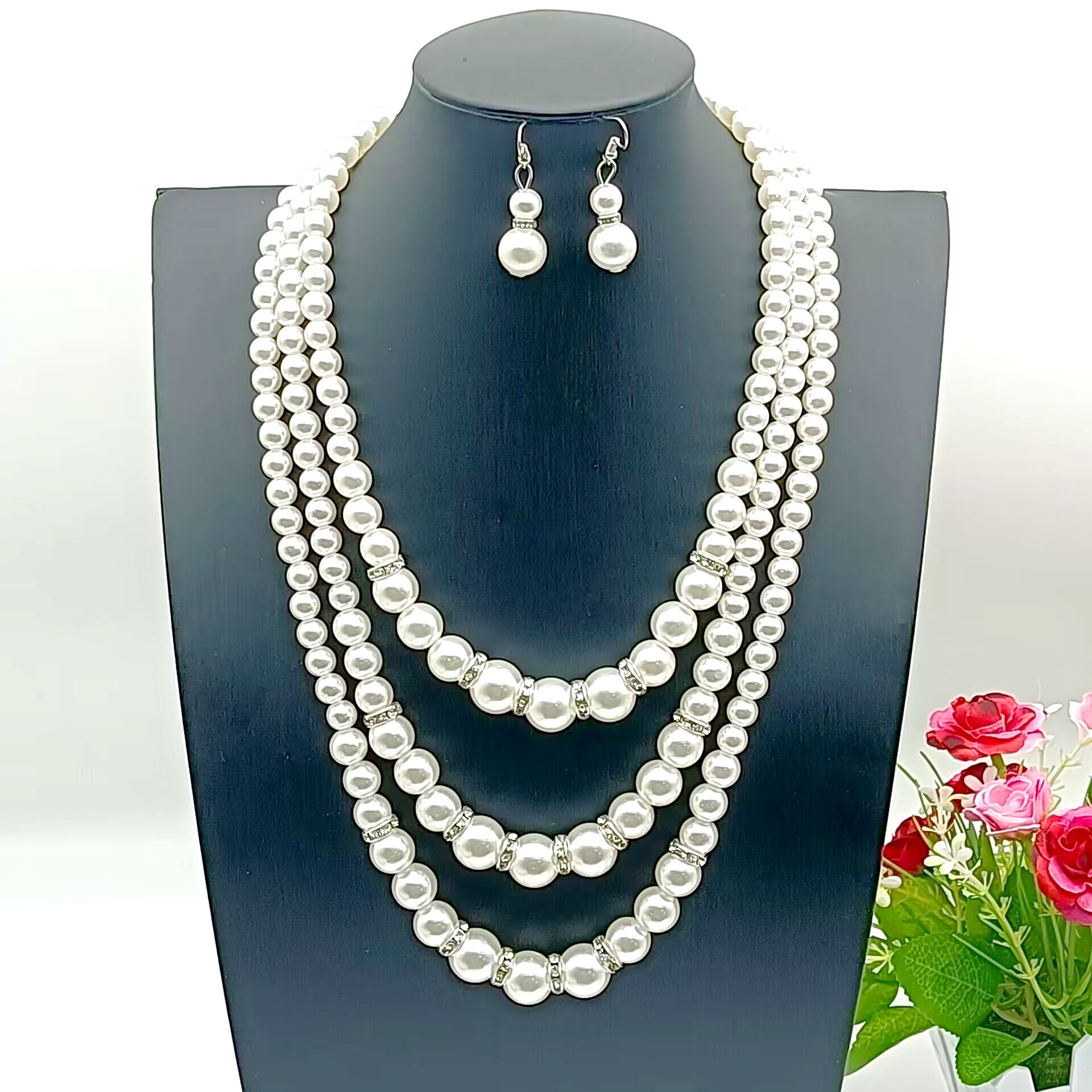 European and American popular French highlight new three-layer Pearl mix necklace temperament necklace earrings suit