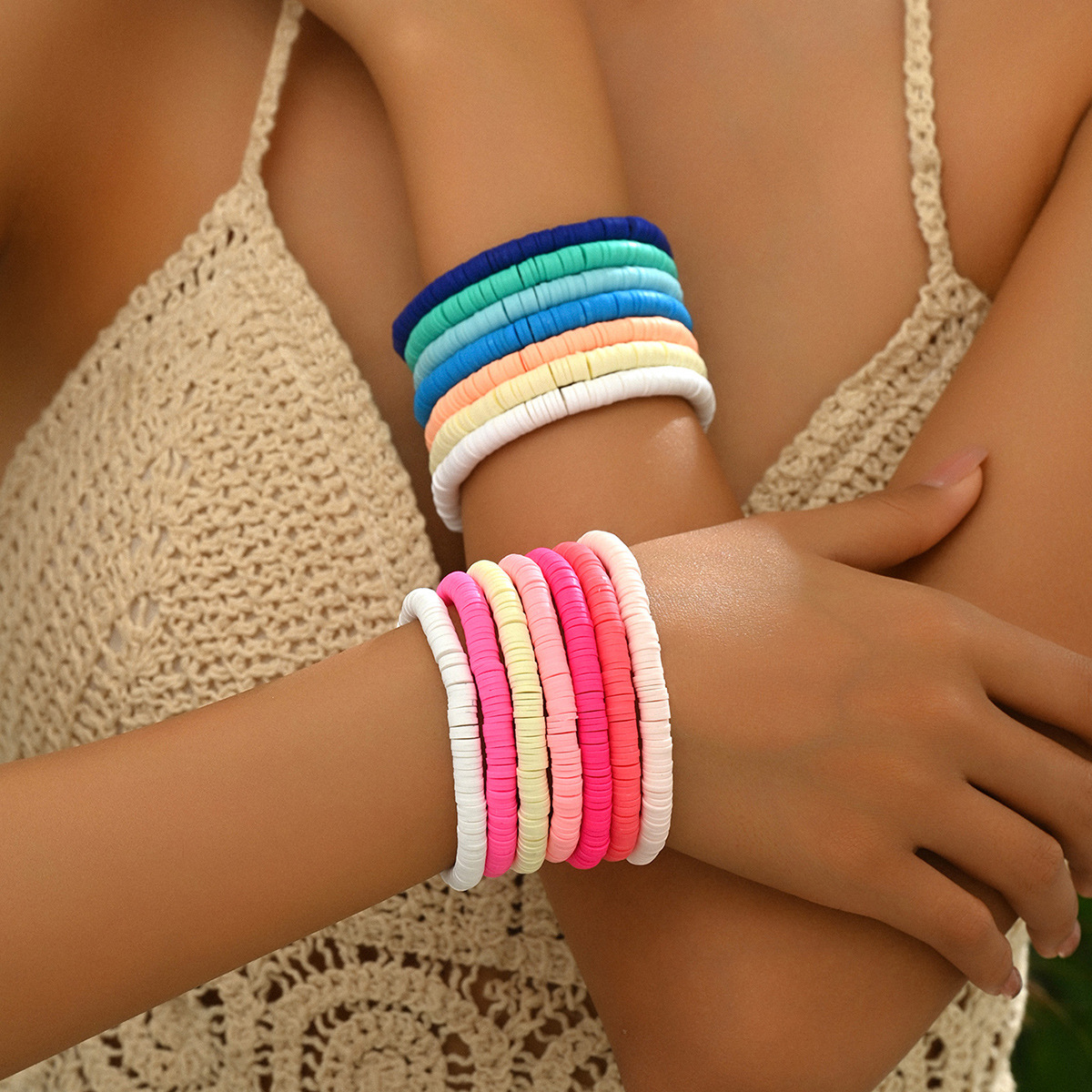 Beach Vacation European and American Ethnic Style Bracelet Mixed Colorful Mix and Match 6mm Elastic Multi-Layer Soft Clay Bracelet Can Be Customized