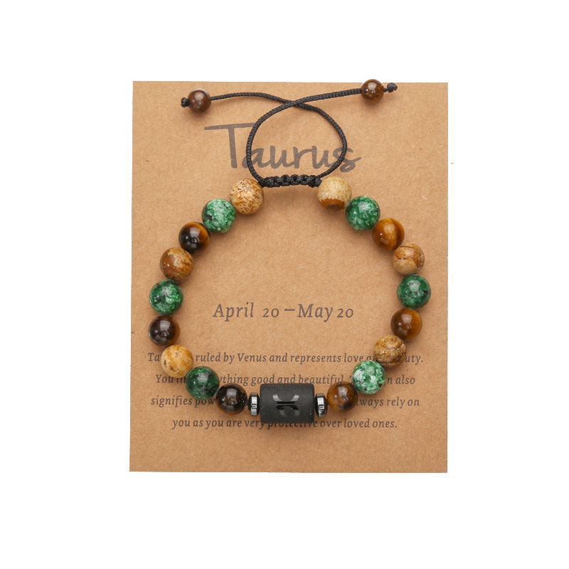 New Arrival Fashion Twelve Constellation Series African Pine Picture Stone Tiger Eye Mix Beaded Woven Bracelet