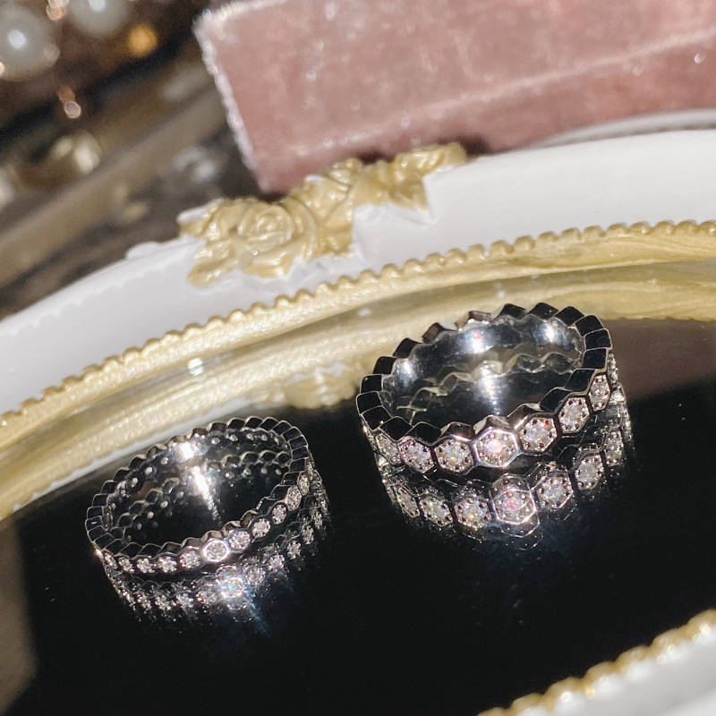 Sisi Niche Design Fashion Light Luxury Ring Gold Plated Honeycomb Imitation Mosane Diamond Ring Personality INS Daily Ring for Men