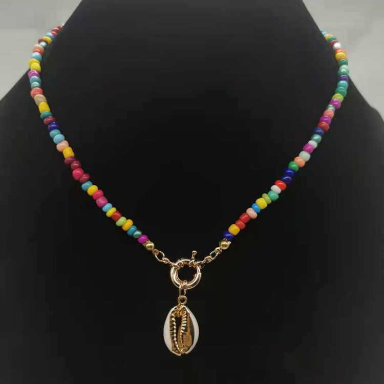 European and American Popular Jewelry Gold Plated Shell Pendant Necklace Mix and Match Colorful Rice Beads Water Hand Buckle Cute Sweet Girl Item
