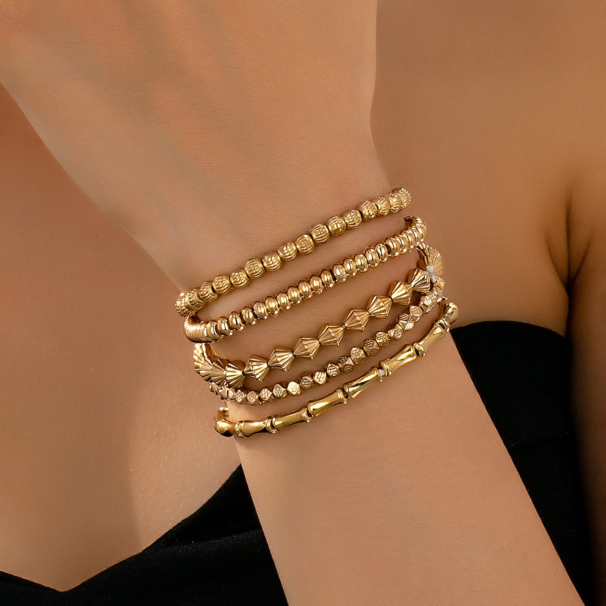 Cross-Border Xiyin Retro Light Luxury Fashion Gold Bamboo Bead Geometric Texture Mixed Element Bracelet Five-Piece Set for Women