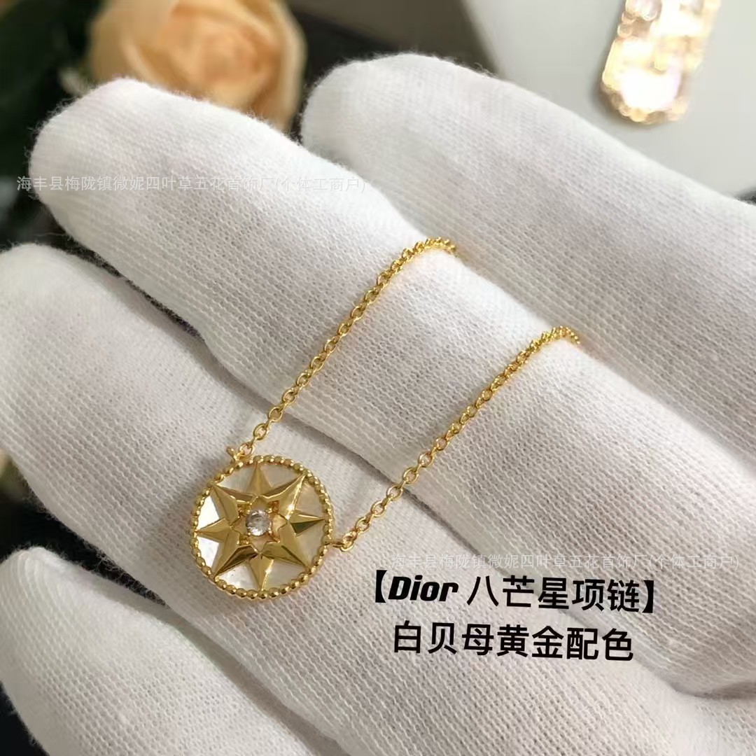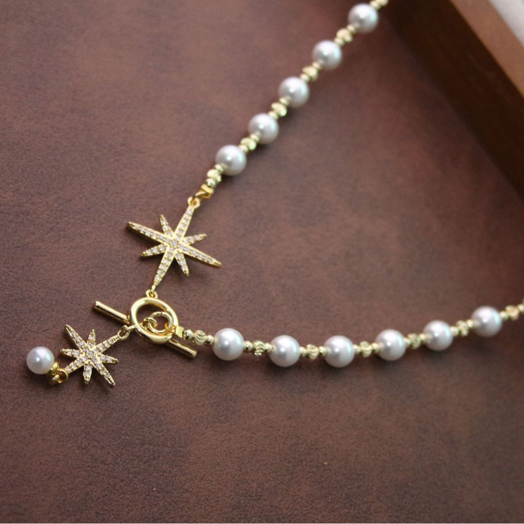 Dijia Compass Eight-Pointed Star Necklace for Women, Natural White Mother-Of-Pearl Agate Clavicle Chain, Niche Design Mixed and Layered Bracelet