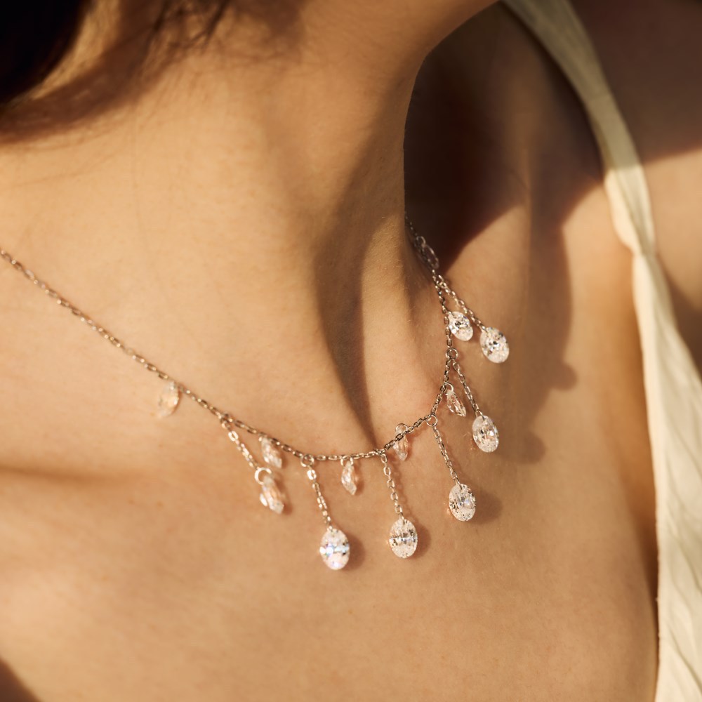 European and American 925 Sterling Silver Necklace for Women, Niche Light Luxury Tassel Geometric Stackable Lace Edge Mix and Match Super Fairy Clavicle Chain