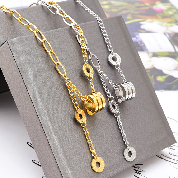 European and American Short Sweater T-Shirt Necklace Roman Round Waist Pendant O Word AB Mix and Match Chain Hip Hop Style Titanium Steel Jewelry