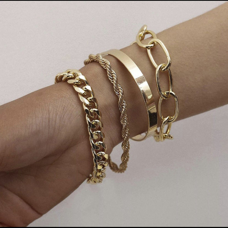 European and American Cross-border Jewelry Simple NK Exaggerated O-shaped Set Bracelet Smooth C- shaped Mix and Match Twist Chain Bracelet for Women