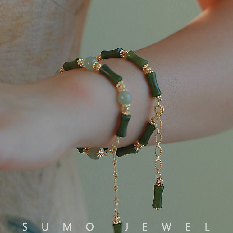 Xingchenzi * Natural Olive Jade Bamboo Bracelet Women's New Chinese Style National Fashion Fresh and Elegant for Girlfriends All-match