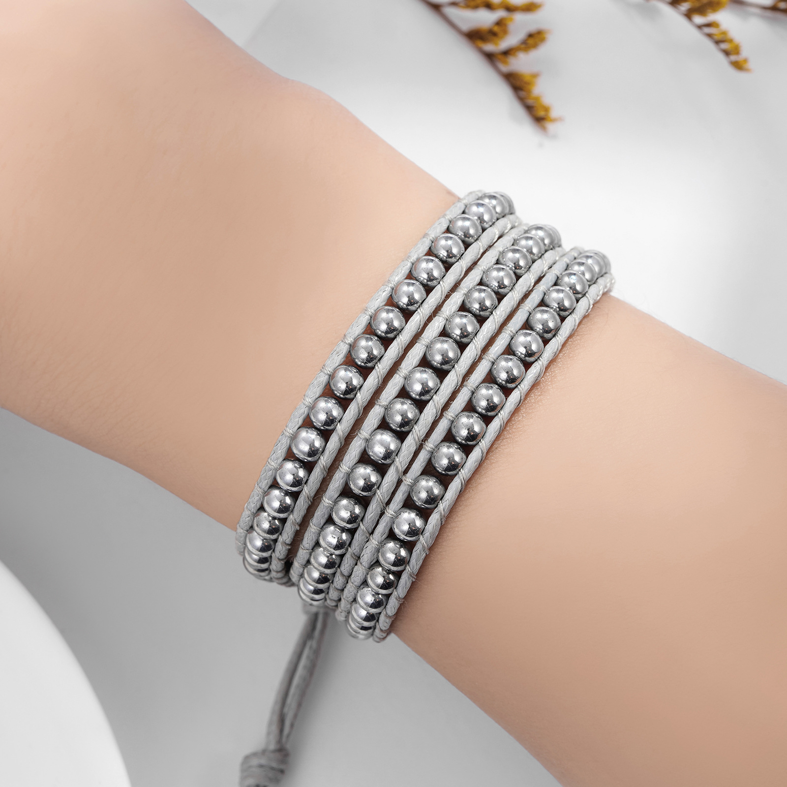Amazon Explosions Black Gallstone Silver Multi-layer Bracelet Mix and Match Woven Winding Bracelet Leather Strap Bracelet Factory Direct Supply