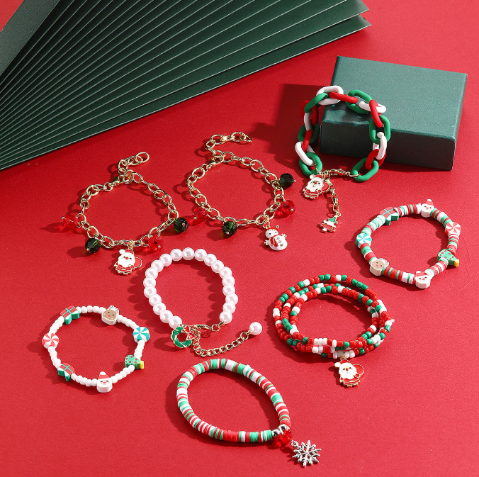 European and American Cross-Border Popular Christmas Ornaments Snowflake Bracelet Crystal Beaded Women's Ins-Style Christmas Bracelet Set