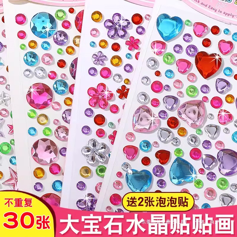 Children's Gem Stickers Crystal Diamond Cartoon Stickers Princess Girl 3D Stereo Reward Stickers Decorative Toys