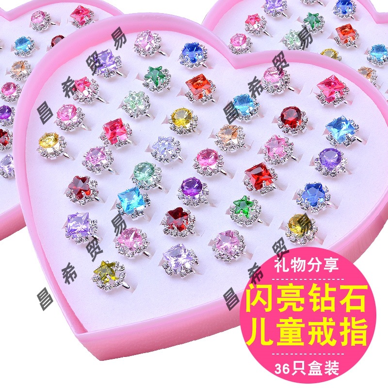 Children's Ring Girls Diamond Gemstone Toy Girl Baby Crystal Small Ring Princess Pearl Jewelry Jewelry Box