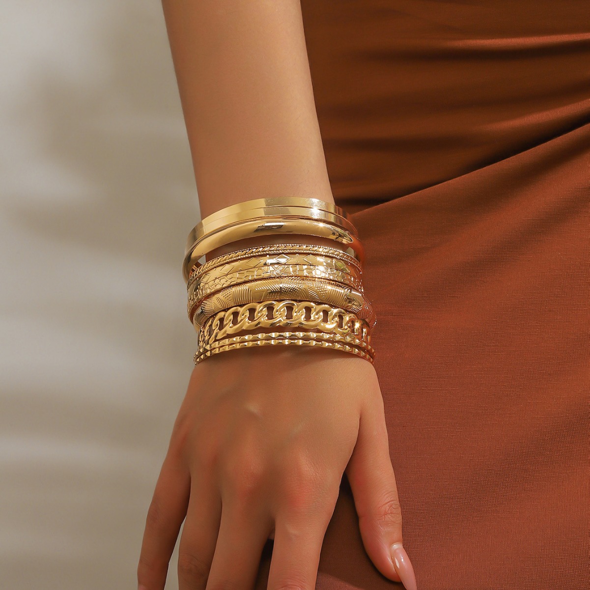 European and American Cross-Border Stacked Bohemian Alloy Bracelet Set for Women, Retro Simple Mix and Match Cut Out Hand Jewelry