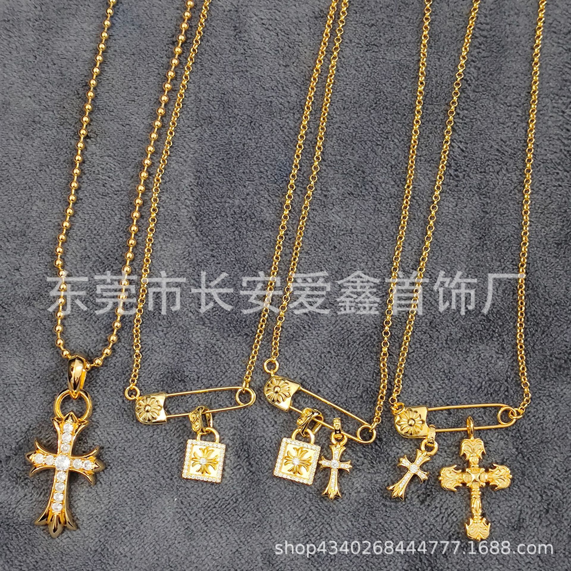 Croda collarbone golden pin cross pendant hip-hop couples universal personality men's and women's necklace wholesale