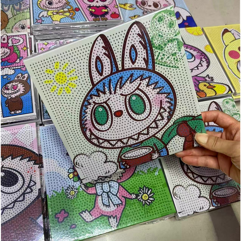 New Labubu Diamond Painting Kidsren's DIY Dot Diamond Sticker Cartoon Masonry Painting Kindergarten Handmade Toys Wholesale
