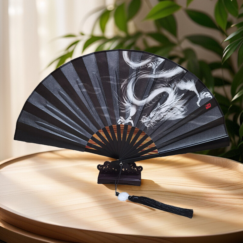 8inch Plastic Fan with Tassel Pendant Ancient Style Domineering Folding Fan Men's Chinese Style Han Dynasty Dance Silk Fan Wholesale