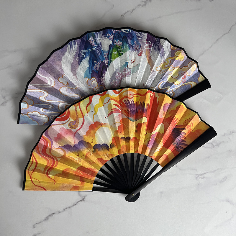 Ancient Style 10inch Illustration Fan Folding Fan Chinese Style Tassel Pendant Hanfu Mamian Skirt Accessory Portable for Men with a Domineering Style