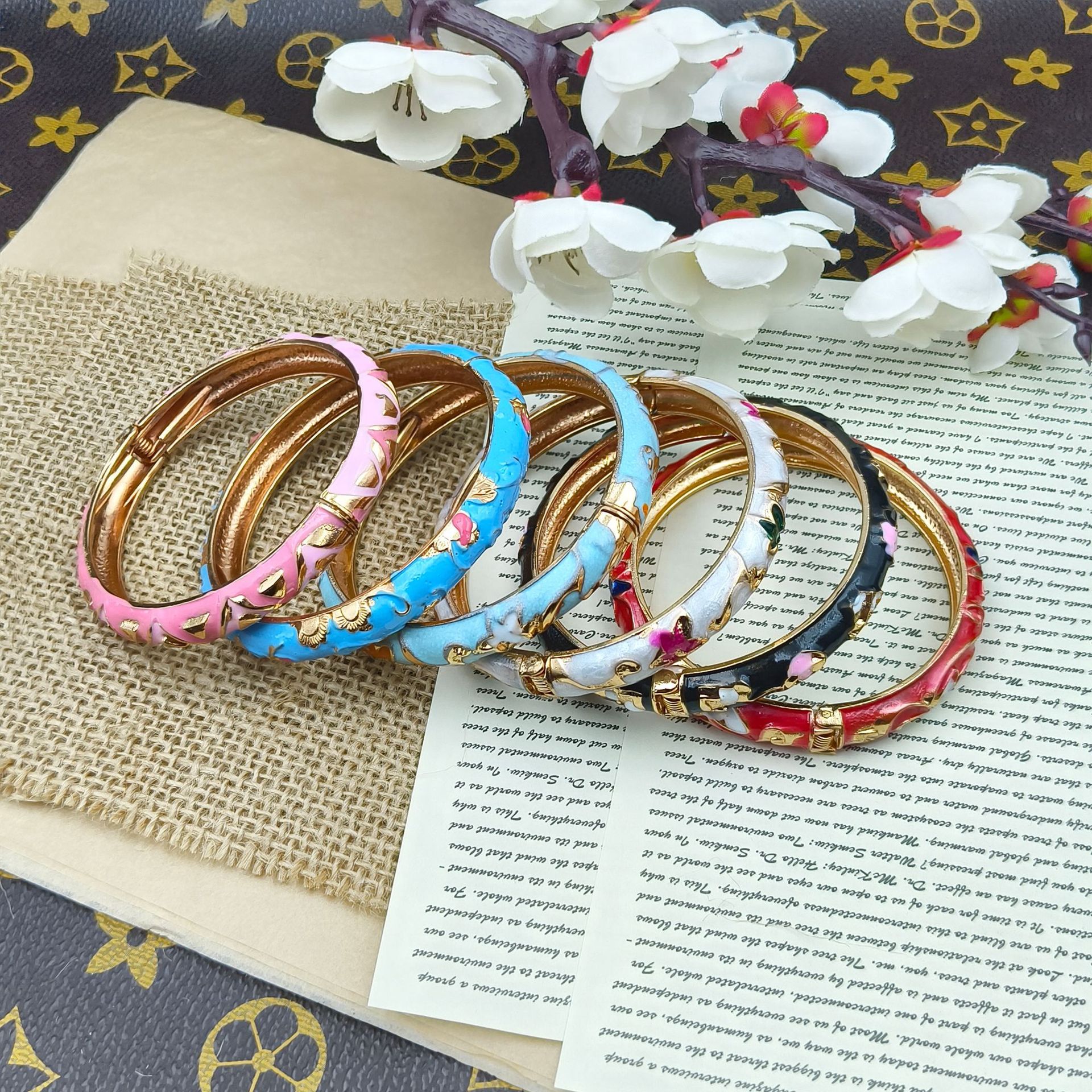 Old Beijing Cloisonné Bracelet Forbidden City Travel Commemorative Bracelet New Chinese Style Oil Drop Enamel Fine Floral Women's Bracelet