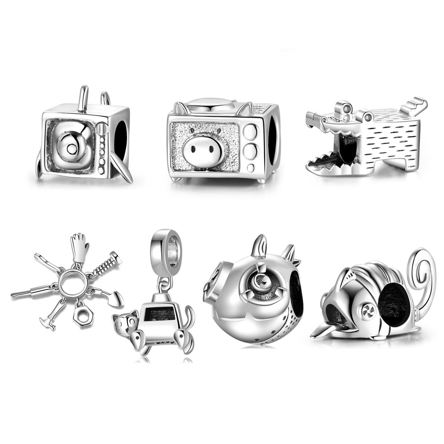 Pig Oven Various Crossover Mix and Match Style Beaded S925 Sterling Silver Beads Plain Silver Bracelet Bracelet Silver Accessories