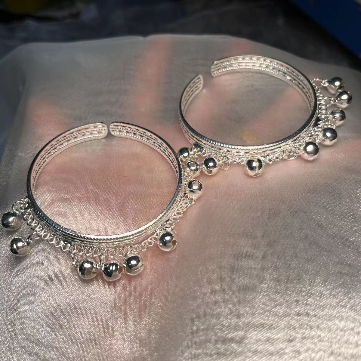 Simple and Versatile Jewelry Bracelet with Bell Design, One-Step Sound Bracelet, Hanfu Accessory, Ethnic Style Bracelet for Women from Miao and Yunnan Regions