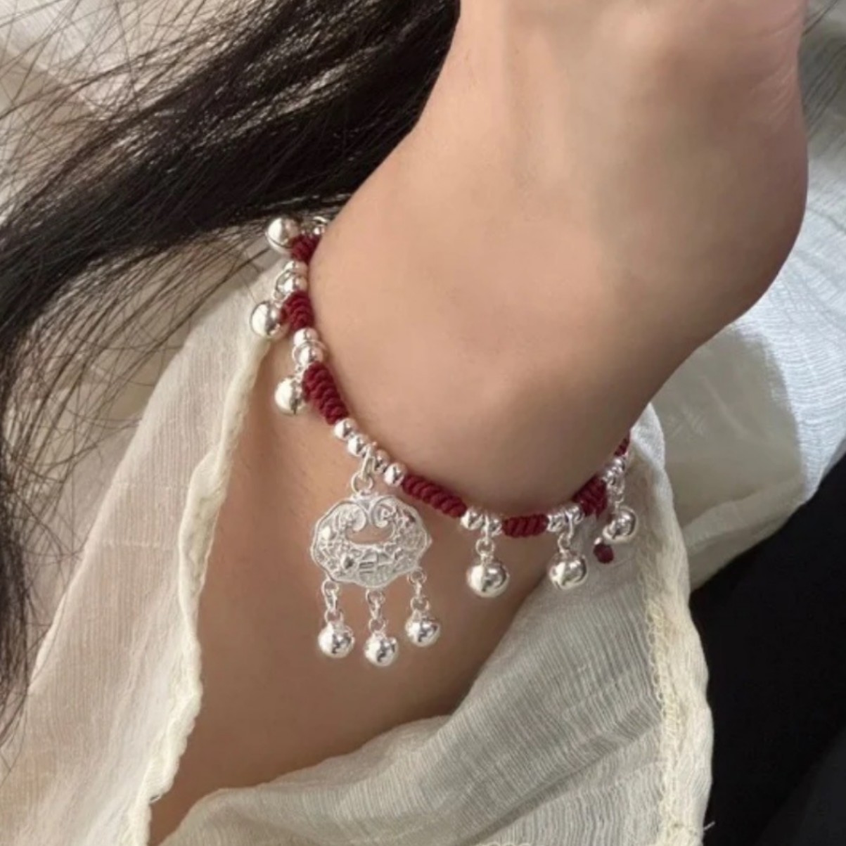 Chinese-Style Longevity Lock, Peace Lock, Woven Bracelet with Bells That Ring with Every Step, Red String Bracelet for the Year of Birth, Beaded Bracelet