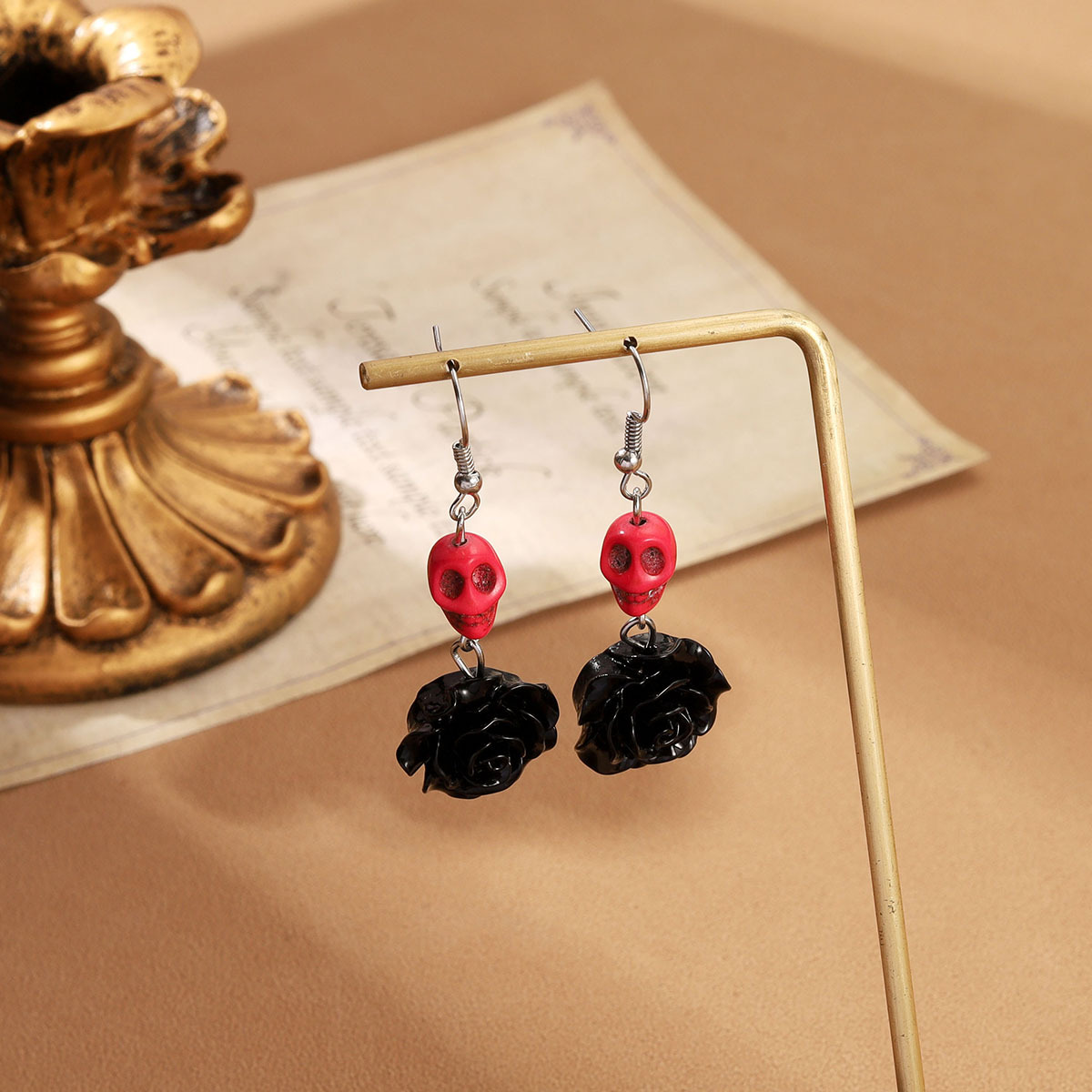 Personality Design Skull Rose Earrings Ins Punk Halloween Horror Element Earrings