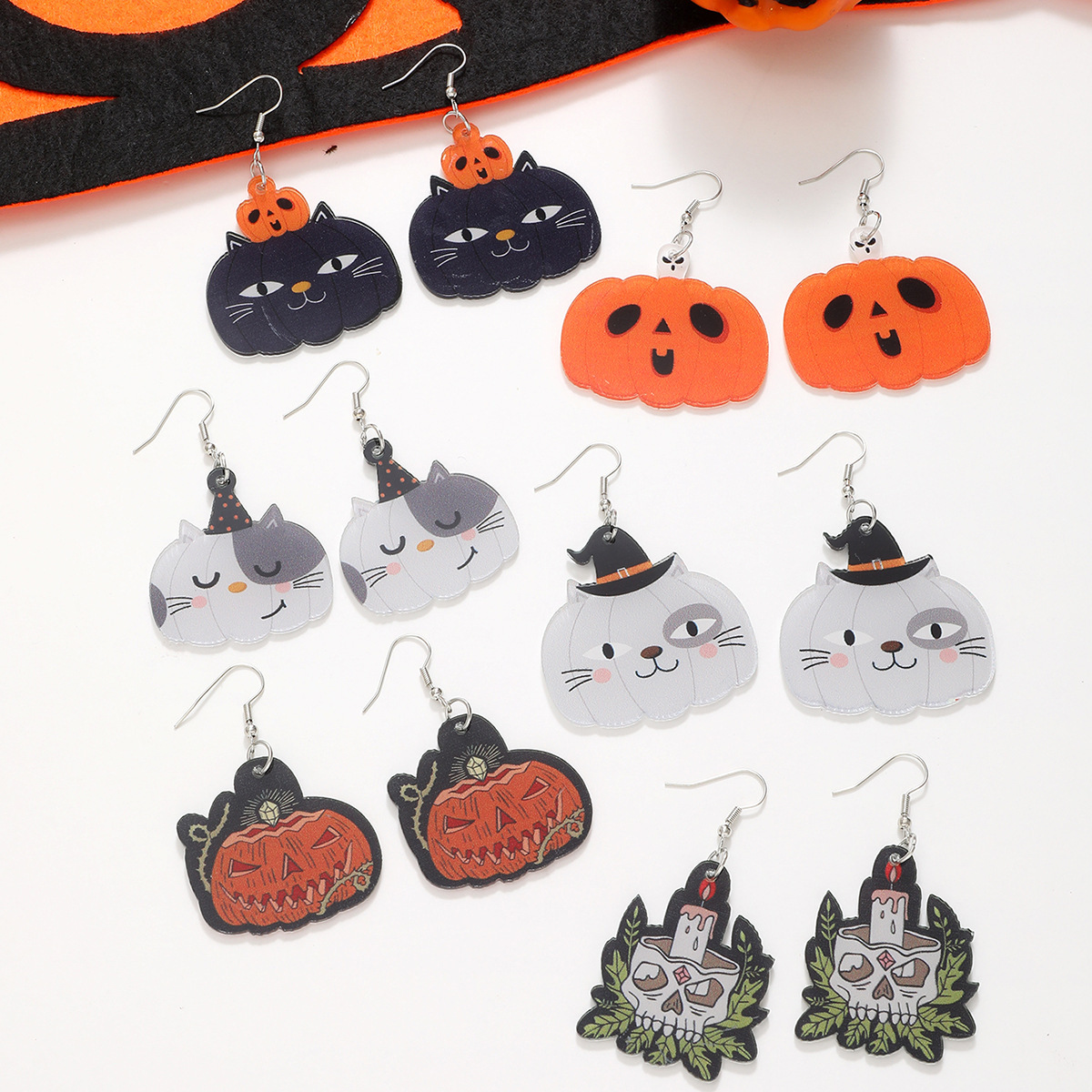 Cross-Border New Product Halloween Earrings Acrylic Double-Sided Long-Legged Witch Pumpkin Man Skull Horror Atmosphere Earrings