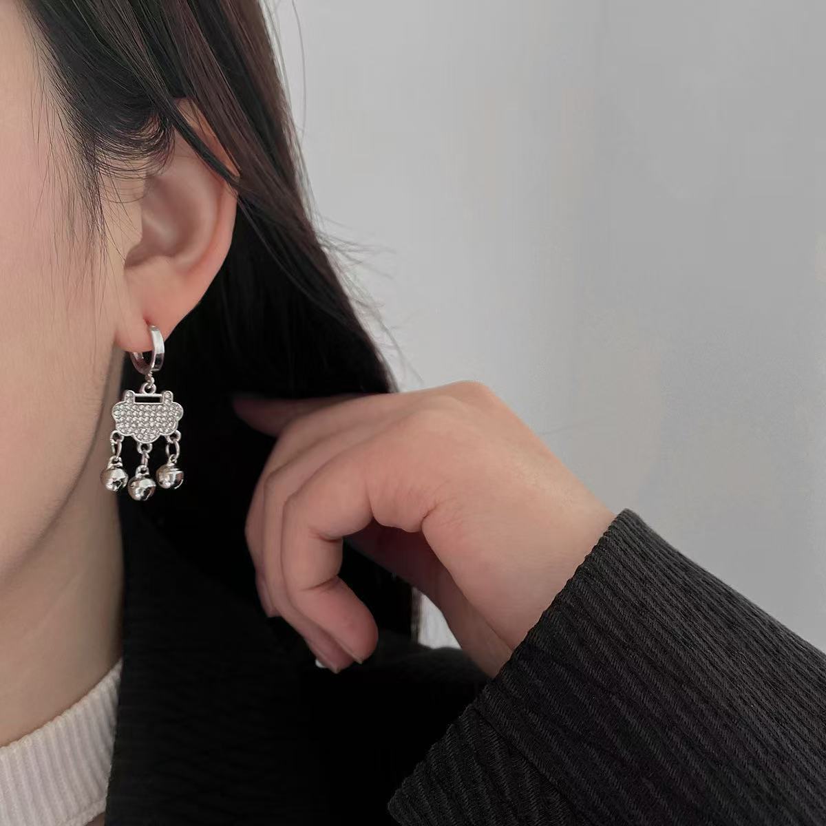One-Step Safety Lock Earrings with Niche Design, High-End Luxury Temperament Earrings, Personalized Bell Earrings, Stud Earrings