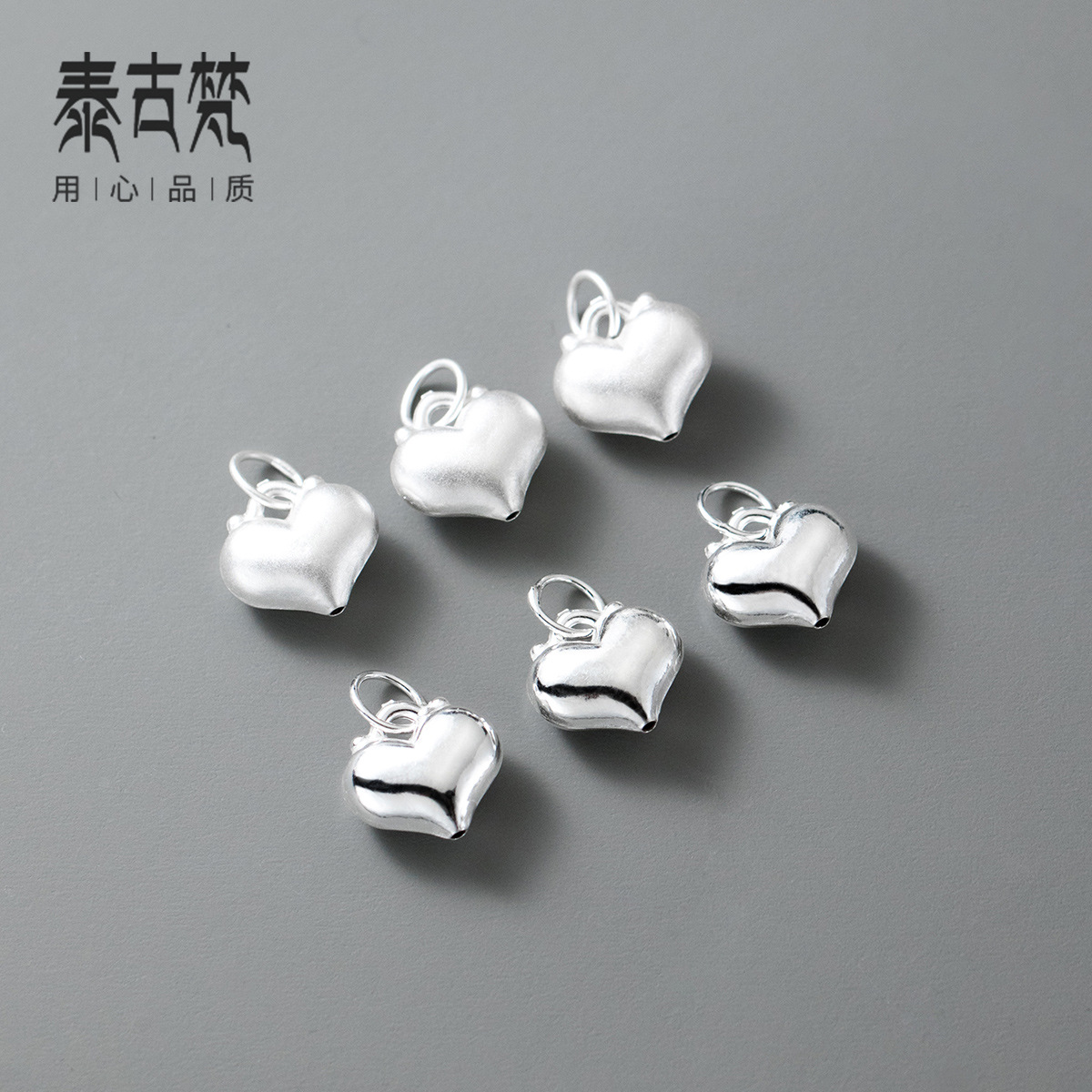 S925 Plain Silver Frosted with Seed Loving Heart Pendant Handmade diy Handstring Rope Pendant S0444