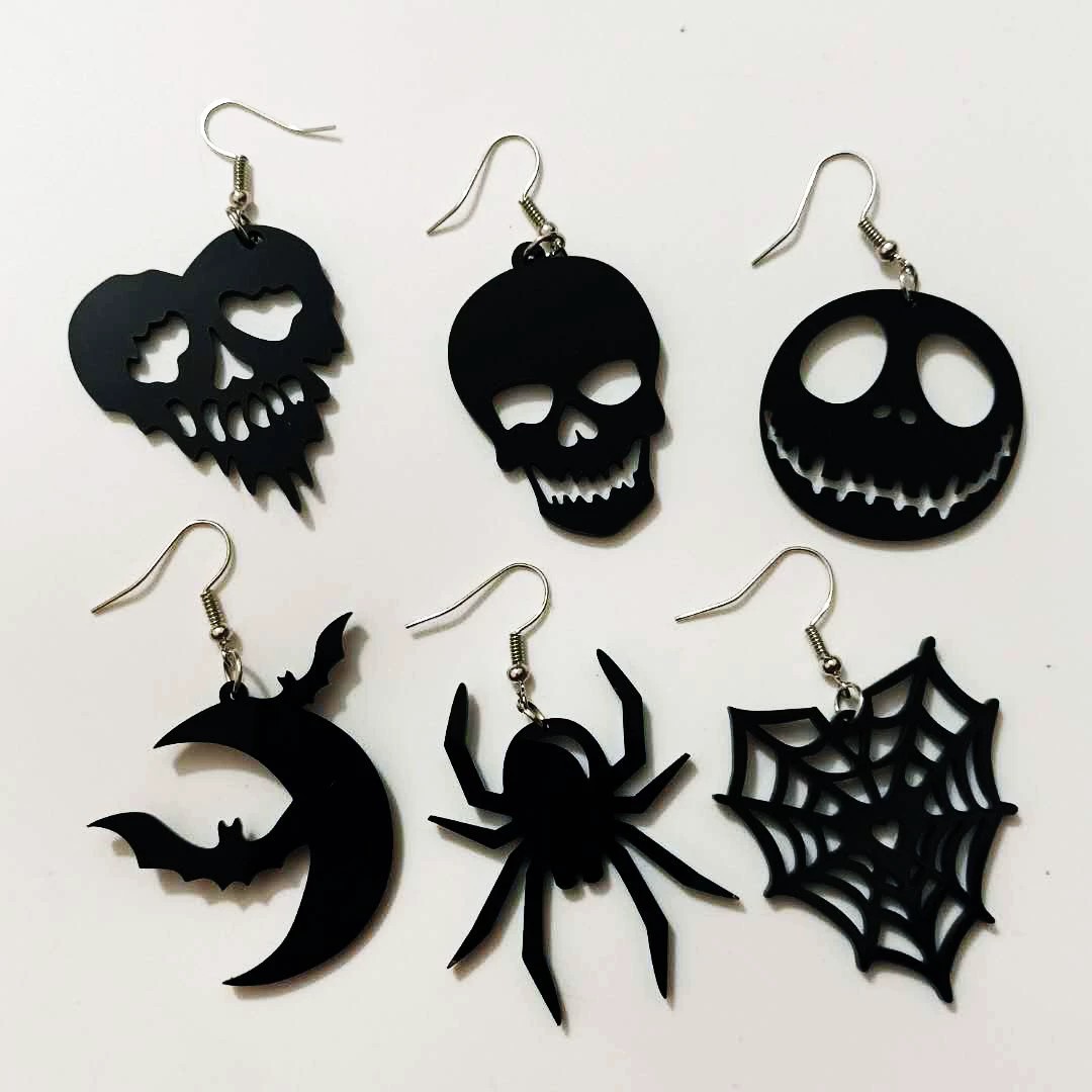Factory direct supply European and American acrylic Halloween horror spider bat Pumpkin Moon love skull earrings