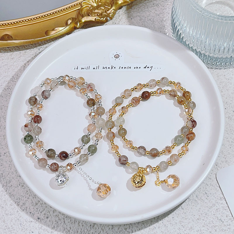One step by one ~ double ring colorful hair Crystal Bell bracelet female light luxury High sense niche design beaded girlfriends bracelet